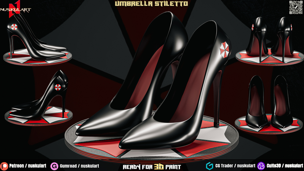 Umbrella Stiletto - Resident Evil Fashion Cosplay - 3D Printing Shoe REAL SIZES